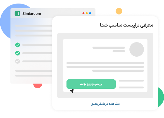 در سیمیاروم، بر اساس ارزیابی اولیه و ترجیحات شما، فهرستی از درمانگرانِ متناسب پیشنهاد میشود. میتوانید از بین آنها درمانگر مناسب خود را انتخاب و جلسه تراپی را از رزرو کنید.